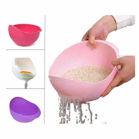 PRAMUKH FASHION Rice Pulses Fruits Vegetable Noodles Pasta Washing Bowl & Strainer Good Quality & Perfect Size for Storing and Straining Pack of 1