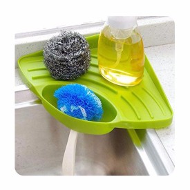 Inditradition Multipurpose Kitchen Sink Organizer Corner Tray (Large, Green, Plastic)