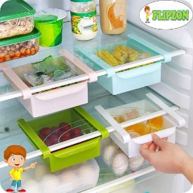 Flipzon Refrigerator Storage Rack, 4 Pack Multi-Purpose Multicolor Refrigerator Classified Storage Box